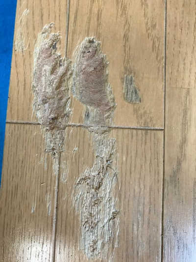 作業前:削られて傷んだフローリングの様子です。